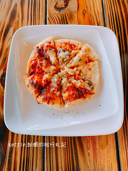 每人低消100元,菜單如上圖,因為在台東用過餐才返程,所以只點了一杯玫瑰拿鐵180元,蘑菇披薩150元(6吋),共花330元。
