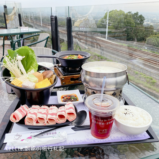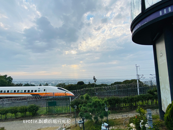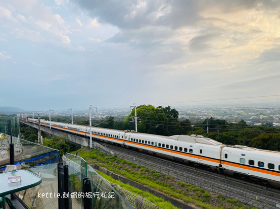 銀河鐵道的門票是100元,可全額折抵。還沒踏進餐廳,就看到高鐵從我們旁邊經過。