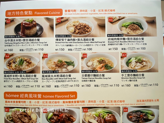 homee kitchen主餐菜單如下,供參考。價位落在100-290間。