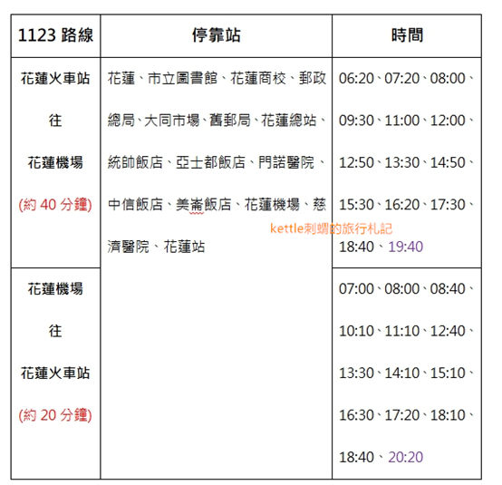 看起來好像班次很多,可是對台中人幫助不大,因為台中到花蓮都22:10分了,最晚一班從機場出發往市區是20:20……