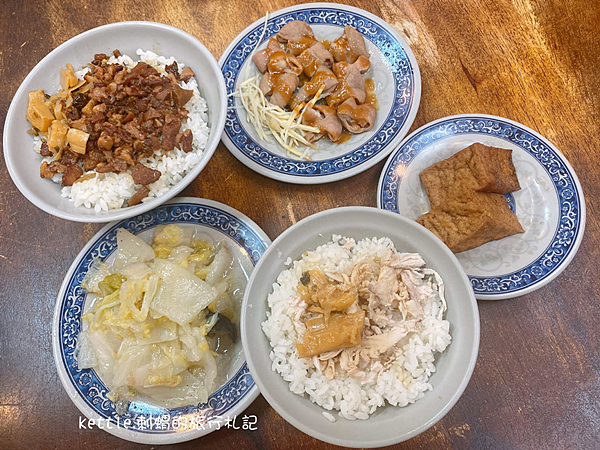 因為外帶感覺不錯,挑了一天來內用,我們點了肉燥飯(30元)、雞肉飯(20元)、滷大腸(30元)、滷白菜(30元)、油豆腐(10元)、冬粉湯(30元),兩人共花150元。