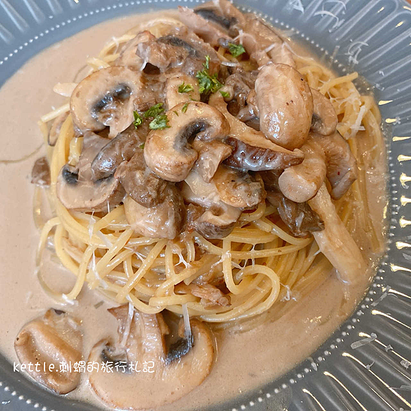 1.推薦牛肝菌菇風味三種蘑菇奶油麵佐松露醬、瑞可達起司