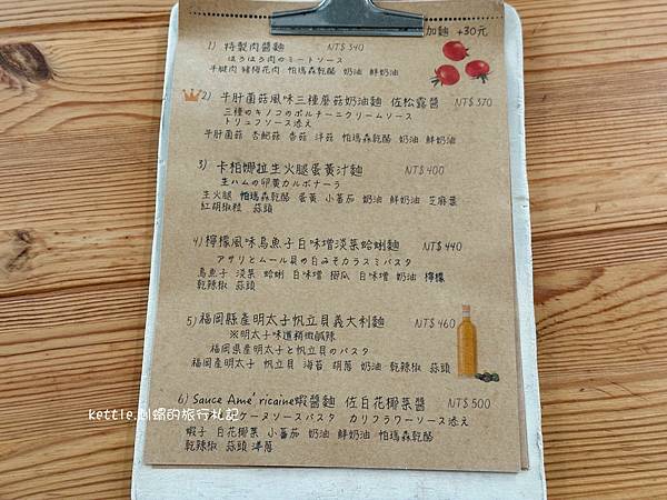 pasta labbito菜單如上,提供六種義大利麵,價位落在340至500元,供參考,僅收現金。