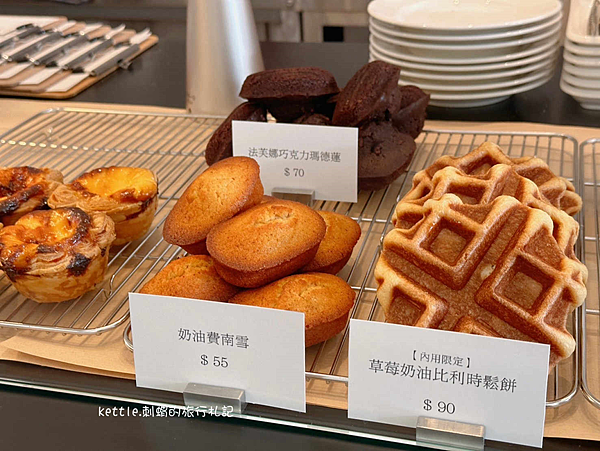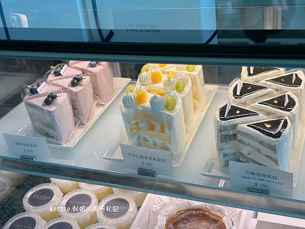 XIANG YI STUDIO享一點心工作室販賣的品項非常多,常溫點心如司康、達克瓦茲、蛋塔、小鬆餅等,冰櫃甜點也是琳瑯滿目,奶油蛋糕每天會有2-3種口味。