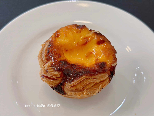 近拍蛋塔,外皮蓬鬆酥脆,單吃外皮會以為吃可頌,咬下去蛋香濃郁,我喜歡~