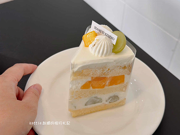 這款芒果白葡萄香緹蛋糕選的芒果跟白葡萄都很多汁甘甜,香草鮮奶油本身也有糖度,整個蛋糕糖度落在7分。